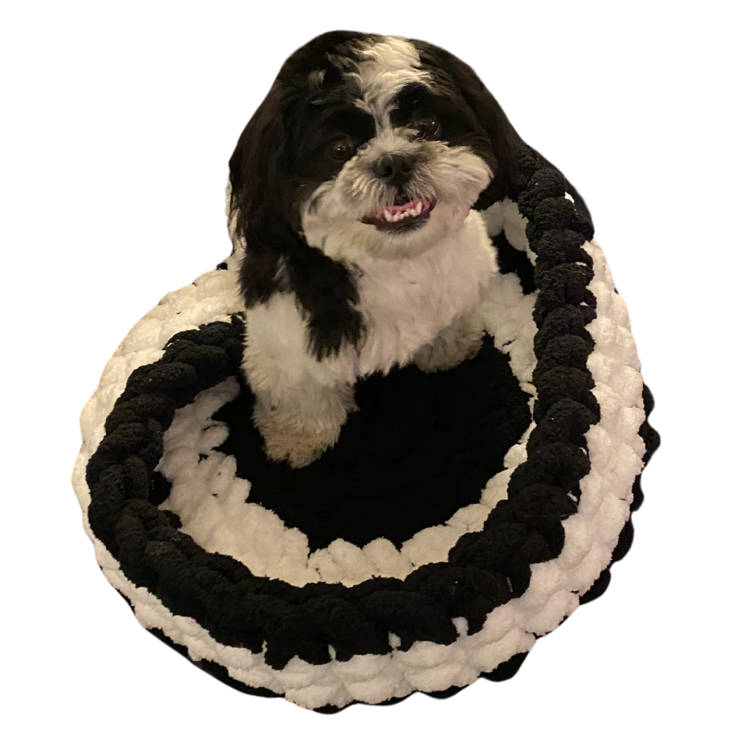 Colorful Comfort: Reflect your pet's personality or match your home décor with our extensive range of 20 yarn colors. From subtle, calming tones to vibrant, playful hues, you can choose up to four colors to craft a bed that's as unique as your furry friend.